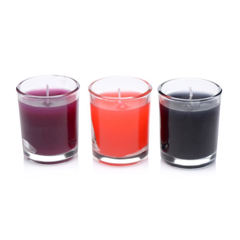 Make them writhe and wriggle as you drop hot beads of wax on their body! Experiment in some high intensity sensation play with a set of candles designed for BDSM - this trio of candles is made with a wax formula formulated for easy melting and dripping. Perfect for all BDSM skill levels to experiment and explore the world of candle play!