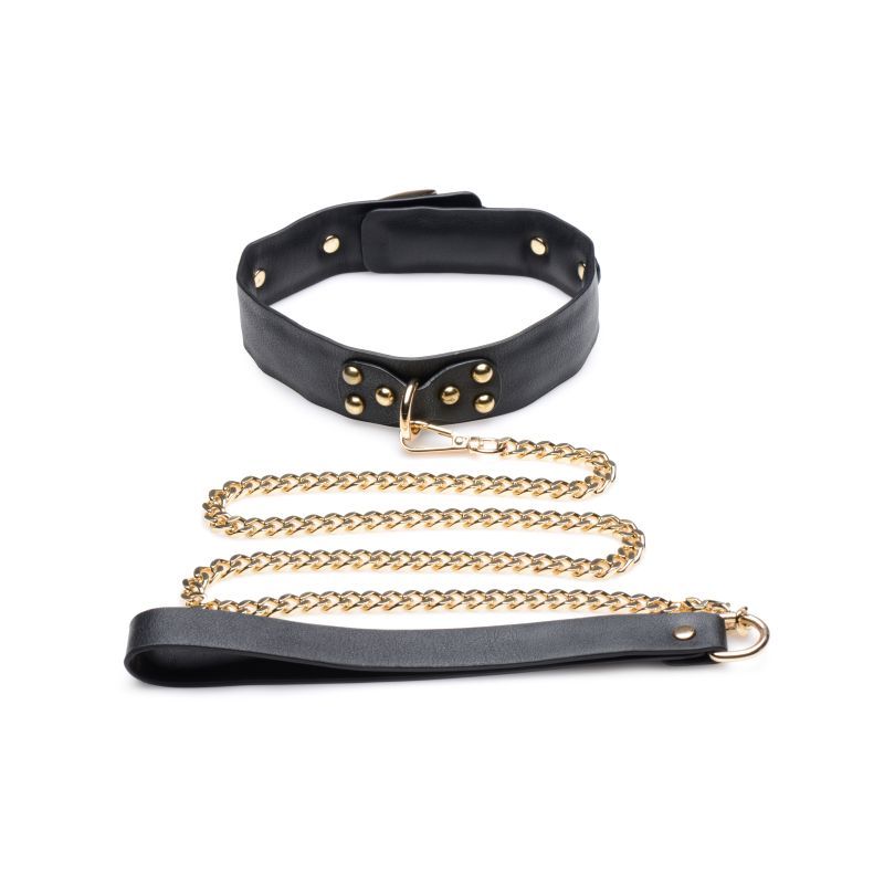 The included collar is padded for comfort and, like the cuffs, is fully adjustable to fit most neck sizes. The 30 inch chain allows you to pull and lead your subject however and wherever you like. This combined with the leather blindfold gives forces your partner to physically and mentally submit to your authority!