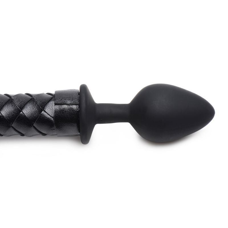 The tail itself is made with sultry straps of PU leather, breaded into a plush meaty form. At the base of this tail near the butt plug is a solid 10.5 inch section to be used as a handle for you to whip and flog your lover with your new tail!