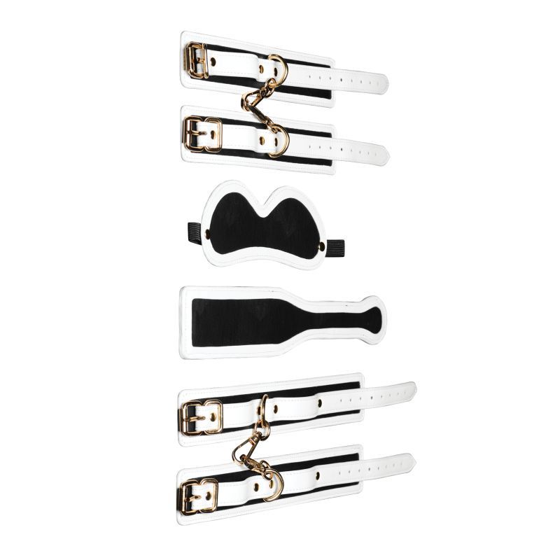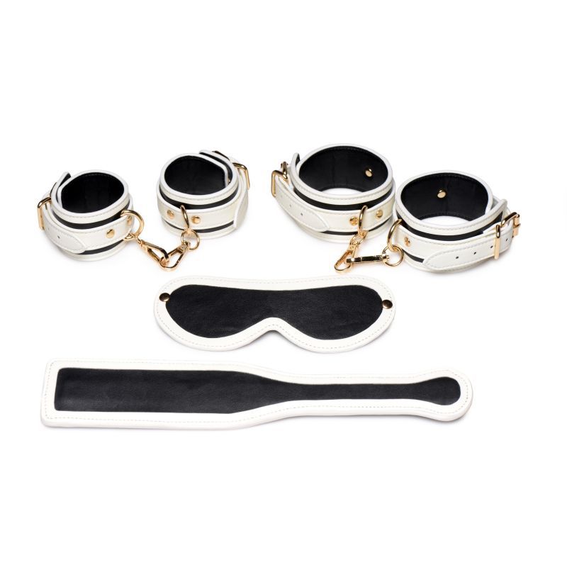 Wrist cuffs, ankle cuffs, paddle, and blindfold included