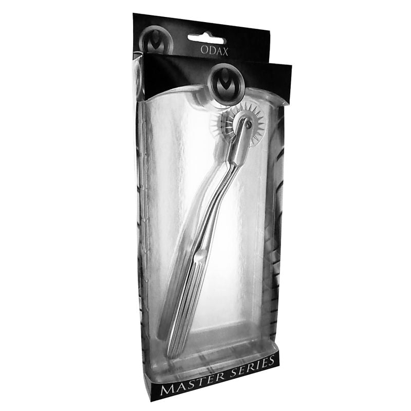 Test the limits of sensitivity play with the Odax Sensation Wheel from the Master Series. Run this premium spiked wheel across the skin and other highly treasured areas for an exciting prickle of pleasure. Made of stainless steel and deviously designed with a row of evenly spaced sharp pins that turn smoothly as it rolls across the flesh, the Odax is ideally designed for intense, exquisite pleasure. Take it to the next level with a little temperature play...the slick material of the Odax can be warmed or cooled for an extra spike of sensation.