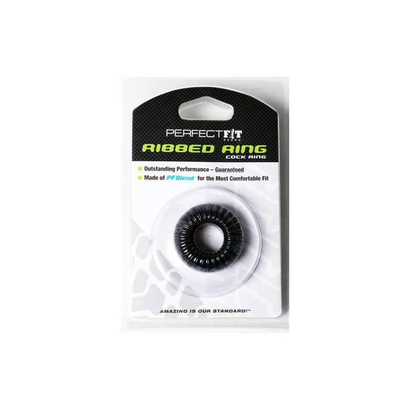 Never mind those cheap flimsy cock rings that break after only a few uses, the Ribbed Ring is the new standard for superior long lasting durable cock rings that won't break. They are extremely comfortable to wear, never harsh or scratchy and made with the sensual comfort of PF Blend. It is made with our industry-leading proprietary materials, which makes it a superior long lasting durable ring that is extremely comfortable to wear. The Ribbed Ring is made of PF Blend which is a mixture of Silicone and TPR and is available in black and clear. The Ribbed Ring is safe with water based lubes. This product is not compatible with latex products. Wash thoroughly with mild soap and water.