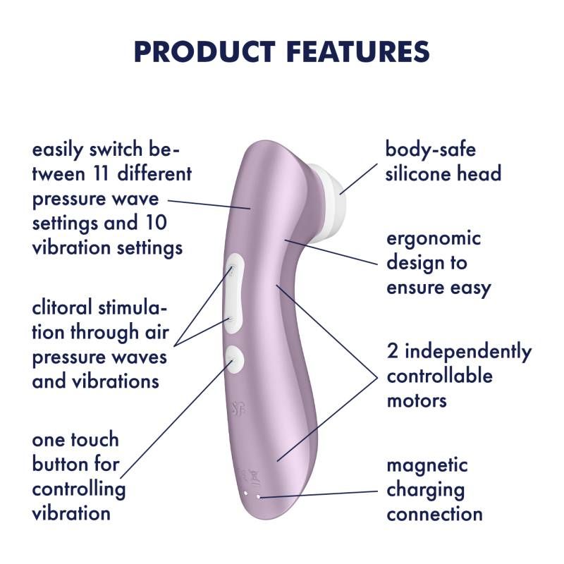 Experience the ultimate clitoral orgasms with this upgrade of the classic Satisfyer Pro 2. The Satisfyer Pro 2 + will make you tremble with a combination of pressure waves and vibration. Let our deeply stimulating Airpulse technology catapult you into a completely new world, while the vibrations give you amazing pleasure.