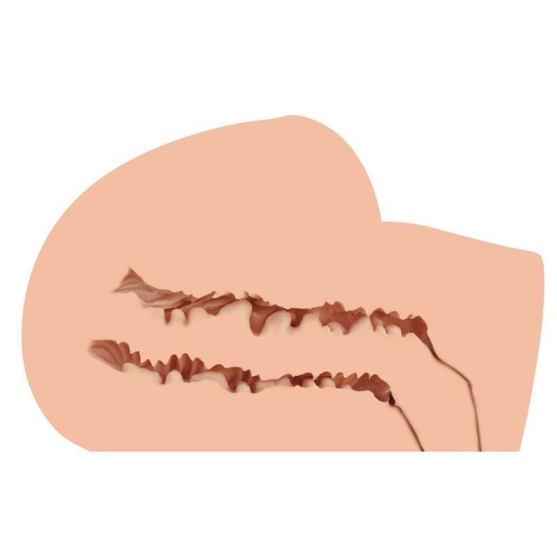 Scarlet has a symmetrical hip design which emphasises the abdominal muscles and attractive thighs. This product has a natural shape, as well as ultra realistic looking labia major and anal folds.