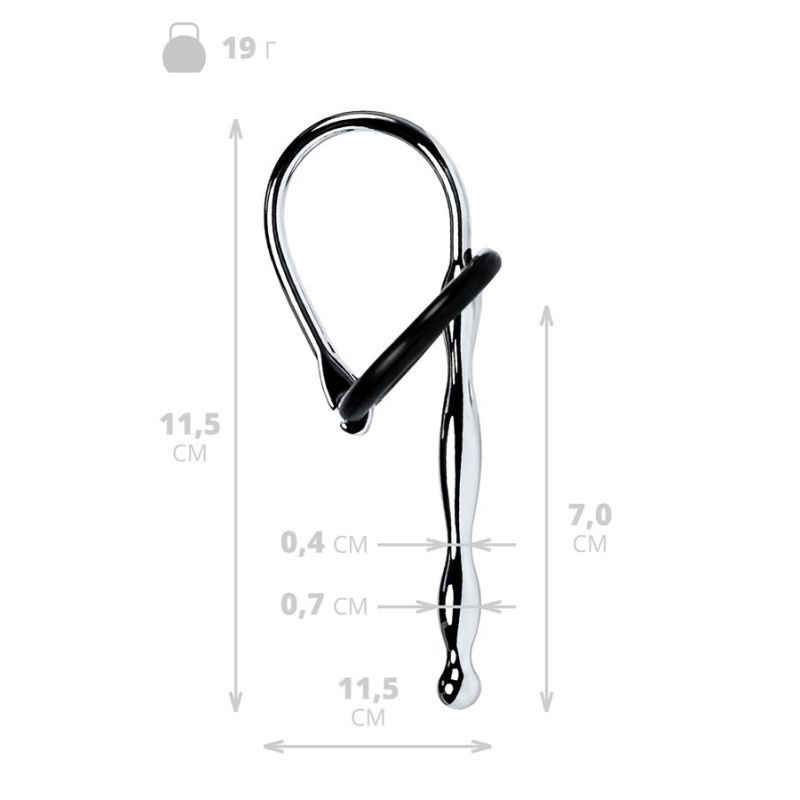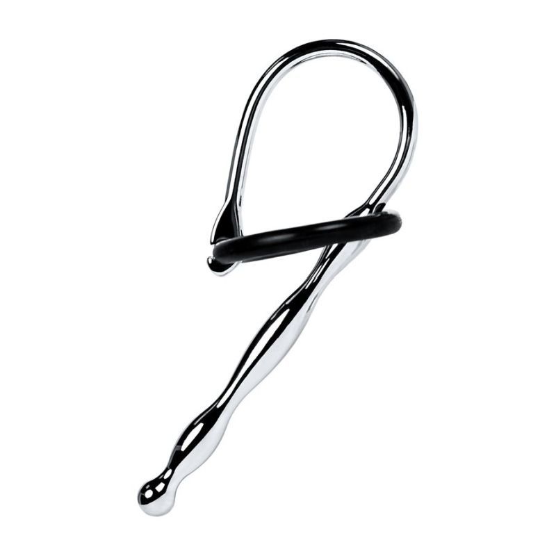 Silver Metal Urethral Plug w Black Silicone Ring